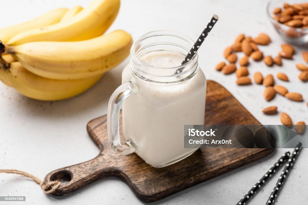 ஒரு மிக்ஸி ஜாரில் பாதாம் பால், துண்டுகளாக நறுக்கிய வாழைப்பழம், புரோட்டின் பவுடர், தேன் அல்லது தேங்காய் சர்க்கரை மற்றும் ஐஸ் கட்டிகளை சேர்க்கவும்.