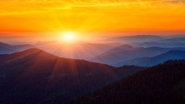 ஒரு அஸ்தமன சூரியன் அழகாய் எட்டிப் பார்க்கிறது.