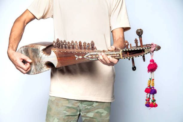 ரூபாப், பொதுவாக மல்பெரி மரத்திலிருந்து செய்யப்பட்டு, அதன் ஒரு பகுதி ஆட்டுத்தோலால் மூடப்பட்டிருக்கும்.
